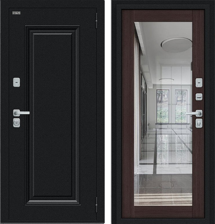 Дизайнерская входная Дверь Браво Thermo Флэш МФ/BChrome Букле черное/Wenge Melinga класса Люкс с несколькими листами стали, звукоизоляцией и теплоизоляцией. Утепленный короб и полотно защитят от сквозняков и шумов. Модель не только надежная, комфортная, защищенная и высочайшего качества, но и очень красивая! Будет отлично сочетаться с интерьером дома, квартиры или офиса. Сейчас действует выгодное предложение по цене: 52 450 руб.